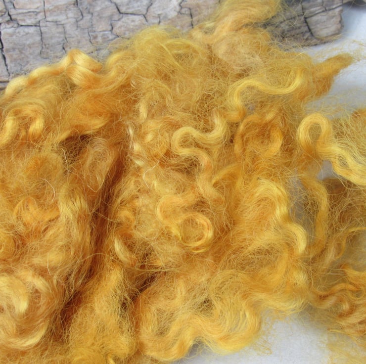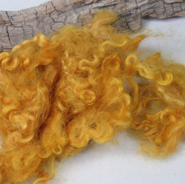 10g of loose Masham curly wool naturally dyed and ready for felting, spinning or weaving.