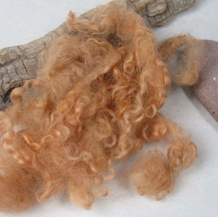 10g of loose Masham curly wool naturally dyed and ready for felting, spinning or weaving.