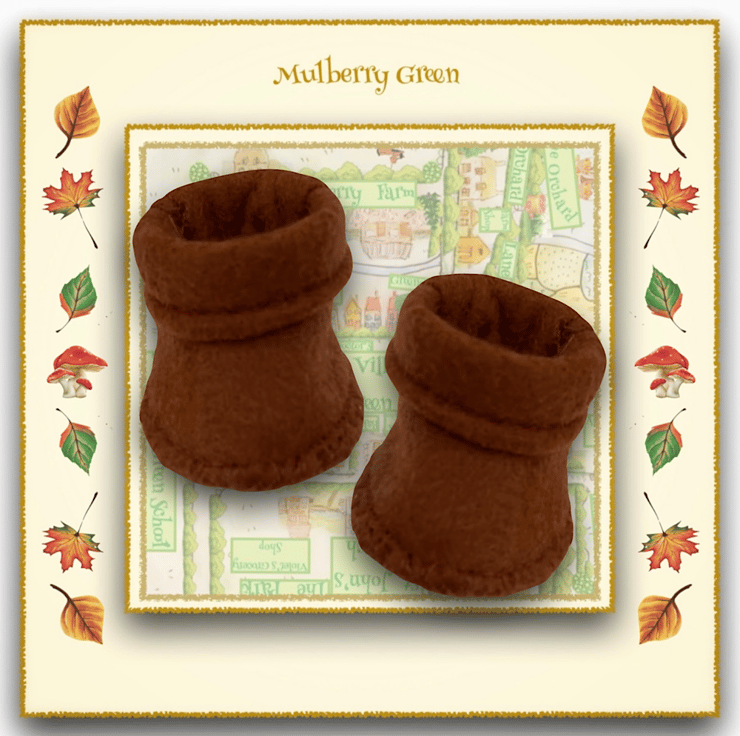 A cute little pair of chestnut brown ankle boots, to fit the Mulberry Green characters. The boots look lovely with the corduroy trousers of jeans or with tights and and a kilt.