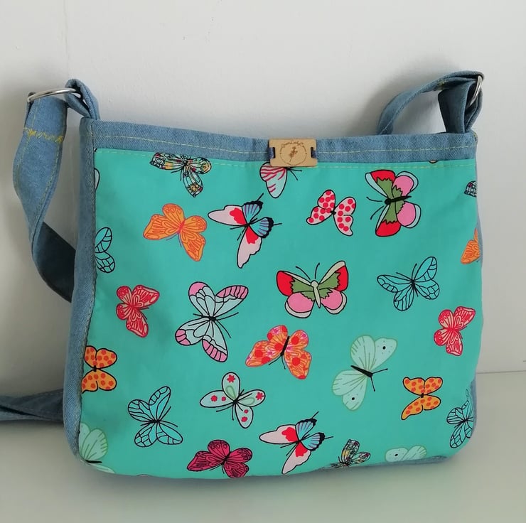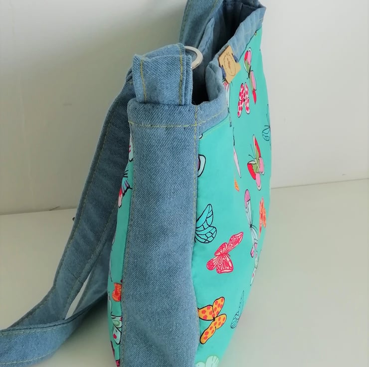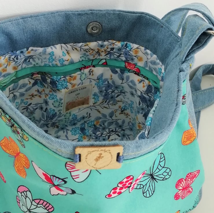Made from recycled and new materials, fully lined with internal pocket. bright and cheerful the ideal ethical gift.