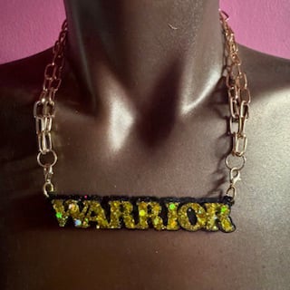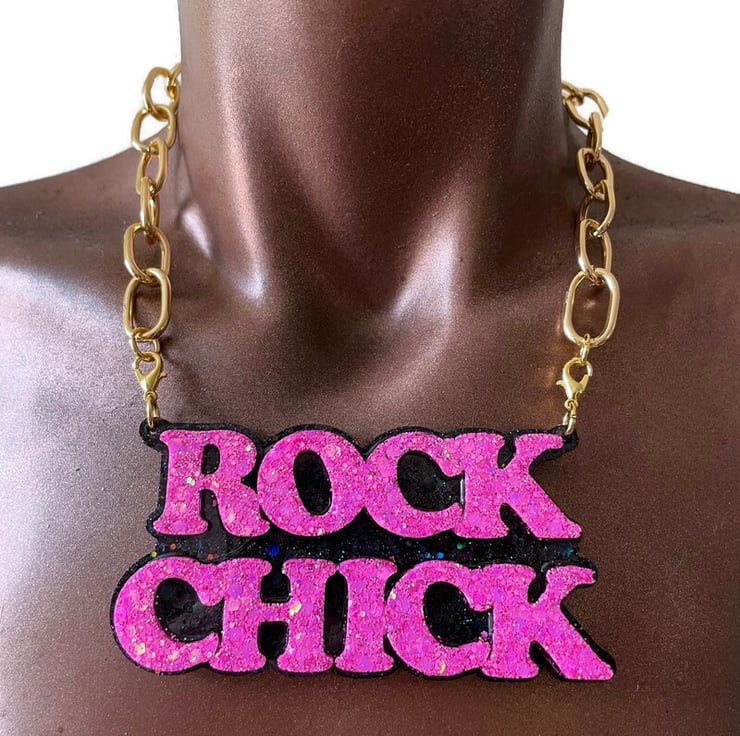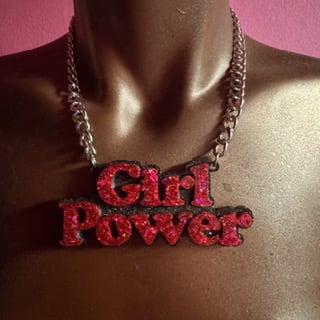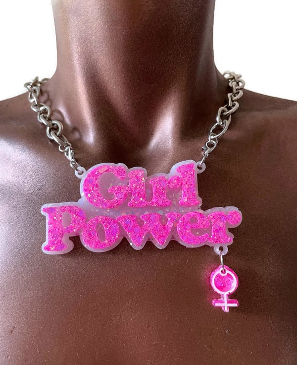 ‘Girl Power’ resin necklace with stainless steel chain. Can be made to colours of your choice with any chain or vegan suede cord seen in other listings