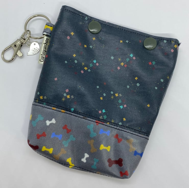 Our charming dog poo bag and treat holder is the perfect companion for walks with your furry friend! This holder is also a stylish solution for treats, keys, and money too and it comes with a handy clip on the side which ensures you can easily attach the holder to your dog's lead, your coat, or your bag. No more worrying about misplacing it during your adventures – it stays securely in place, ready for whenever you need