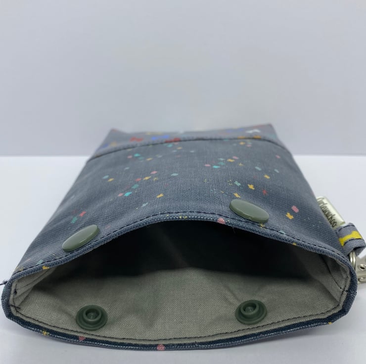 Securing the holder is a breeze with two grey snaps, ensuring quick and easy access. The thoughtful slit at the bottom makes grabbing poo bags a cinch, keeping your walks hassle-free.