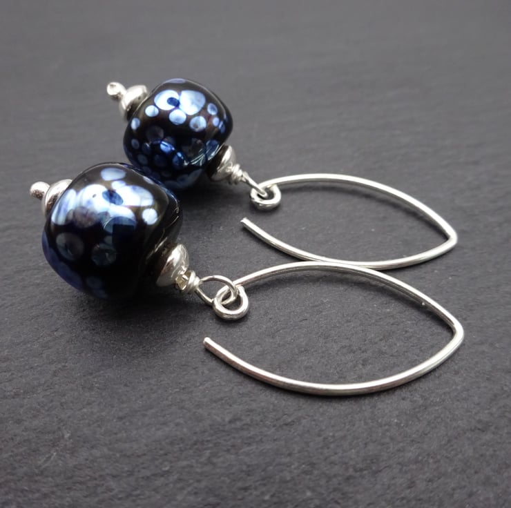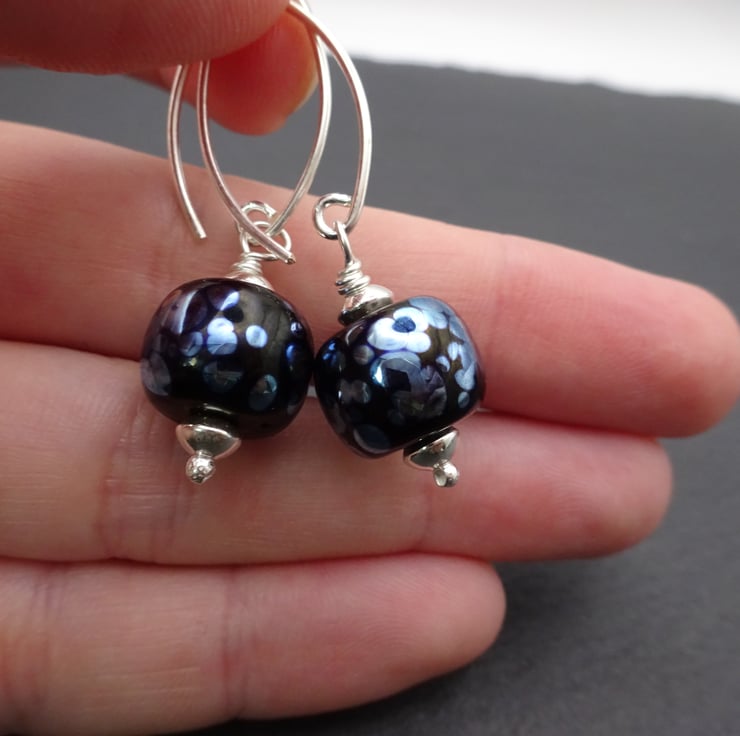 The lampwork beads have been handmade by me using black glass and featuring silver speckles.