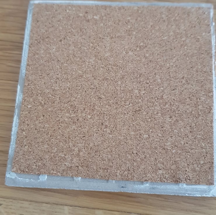 Coaster is backed with cork and sealed with 2 coats of lacquer and 2 coats of heat resistant varnish.