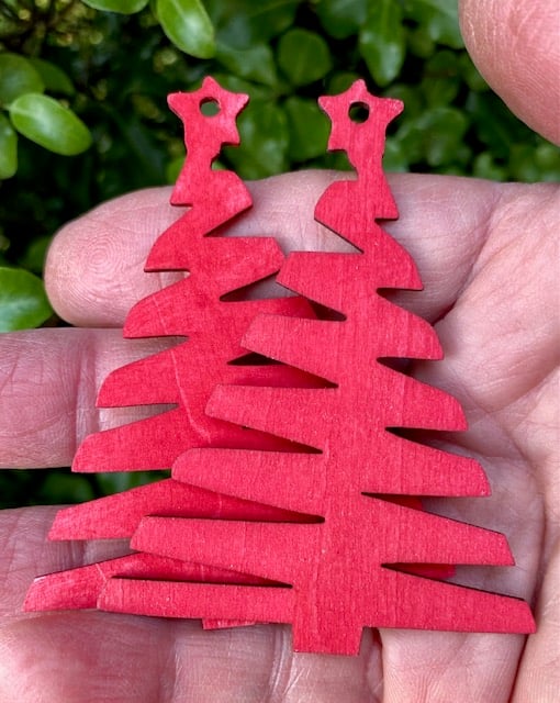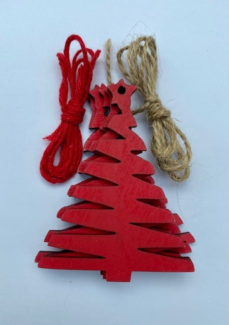 Small hanging Christmas Tree decoration. Ideal to tag on a present, a gift bag, hang on the Christmas tree. Made from 3mm Ply, comes in a set of 5 with 2 choices of string.