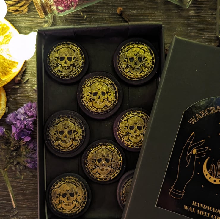 Each wax melt coin is carefully crafted with premium soy wax, ensuring a clean and long-lasting burn. These skull design wax melts, presented in charming gift boxes, are more than just decorative; they infuse your space with delightful fragrances. Perfect for those who seek to bring a touch of the mysterious into their living space.