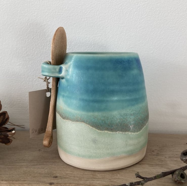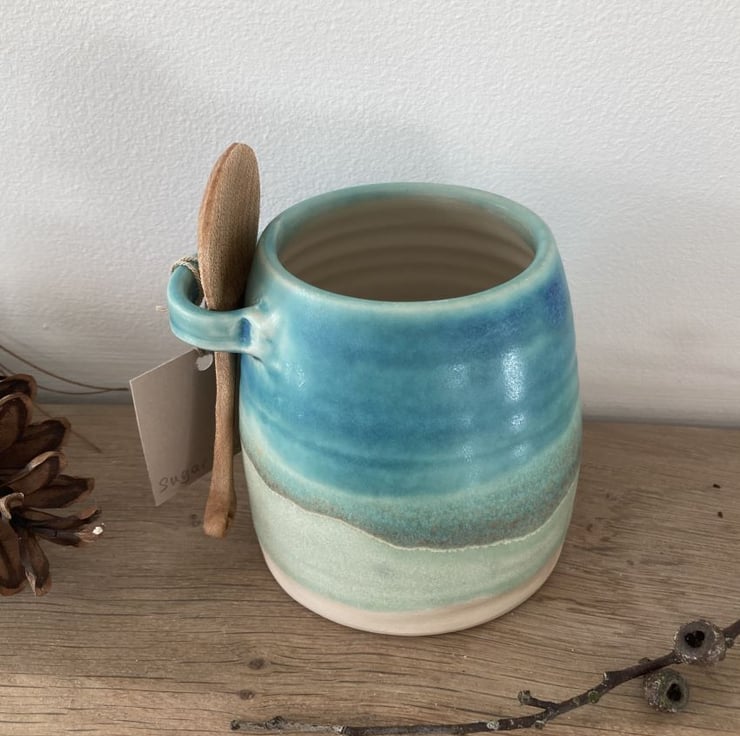 This sugar bowl forms part of my Skyline range which weaves the horizon and feeling of space and the out doors into each piece of ceramics.