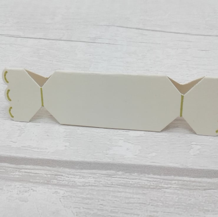 This listing is for a set of 10 cracker shaped place cards/place settings, in cream and gold.