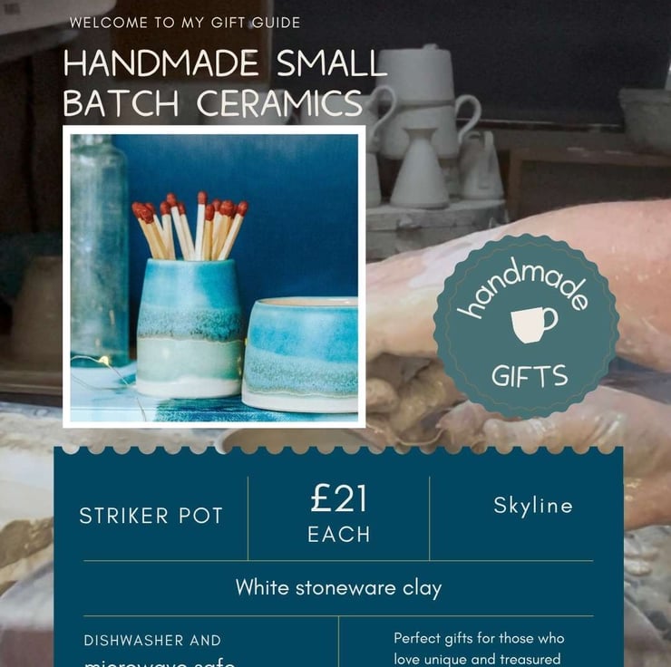 Inspired by the Yorkshire country side and childhood memories of the wild mountains and oceans of the West Coast of Scotland, I make stoneware pots for people seeking space and calm. Ceramics to be held, used and enjoyed. Pots that are tactile and well proportioned, designed to fit perfectly in your hands.