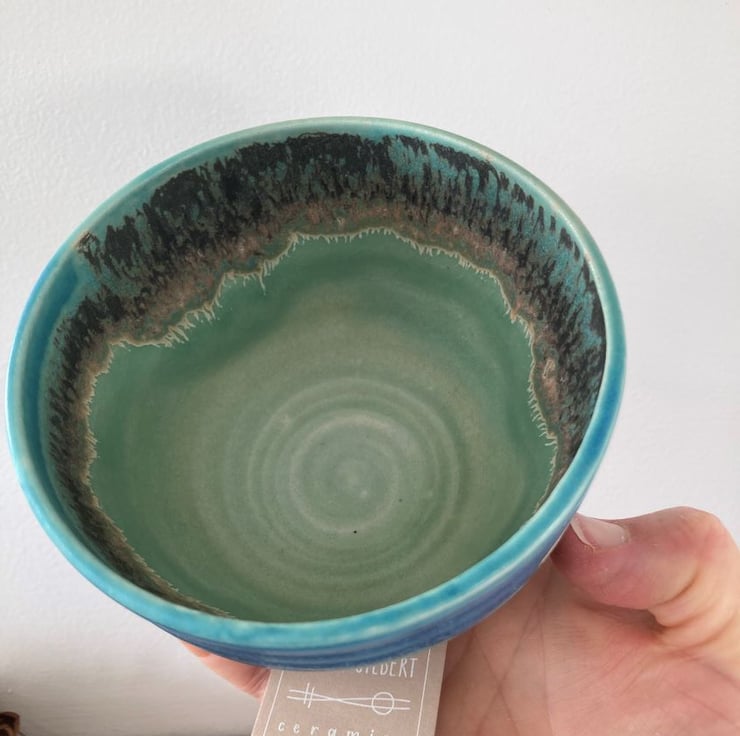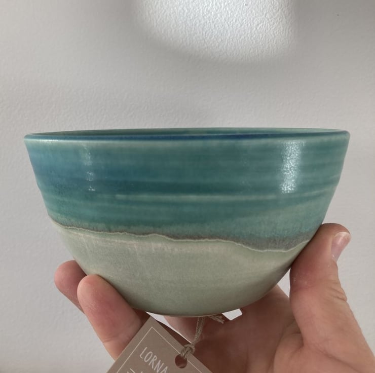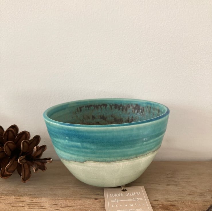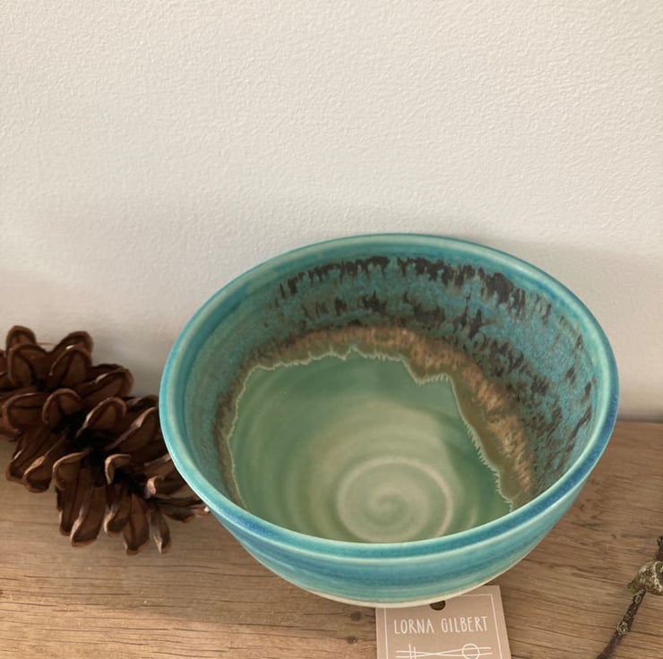 A handmade pottery bowl glazed in sea inspired colours. This would make a perfect gift for those seeking space and calm.