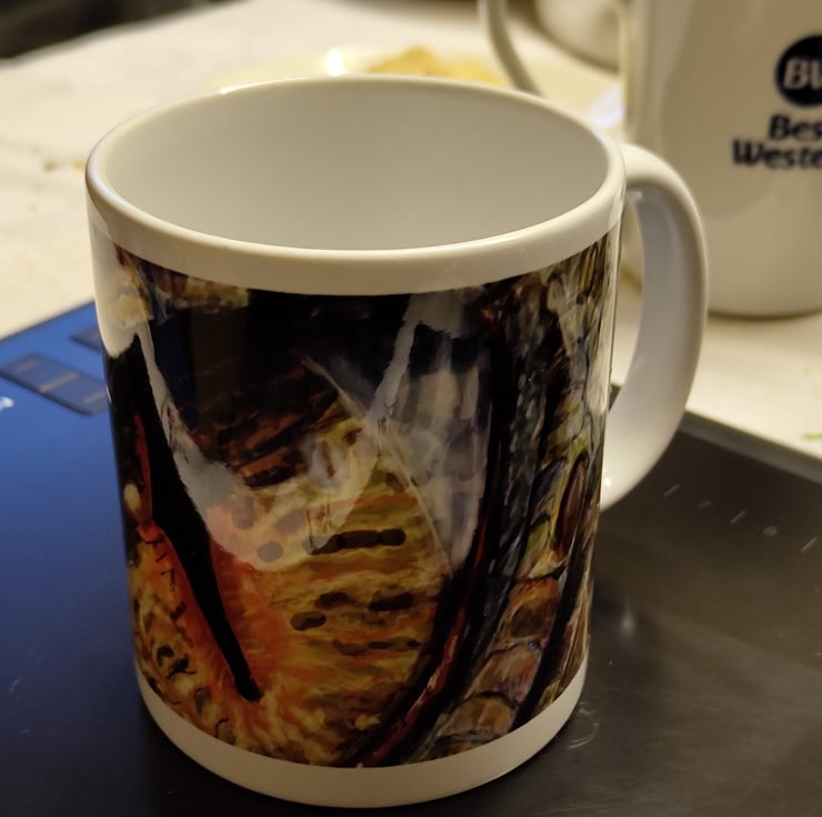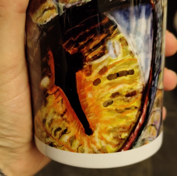 This ceramic mug features my digital painting of a dragons eye.