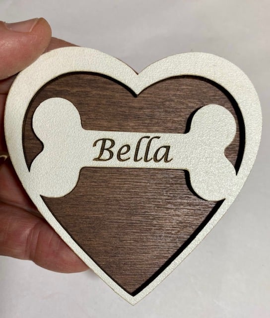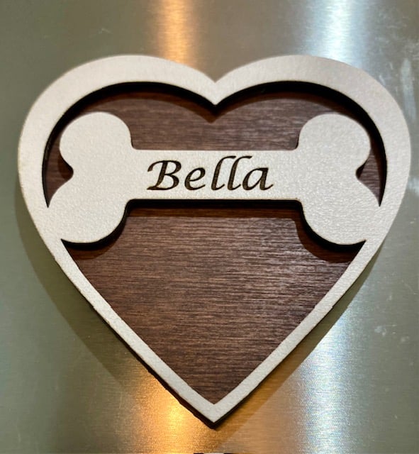 Includes your pets name, a beautiful fridge magnet in honour of your pet. Choose between 3 designs, and send your pets name. Hand made from 3mm Birch plywood, Stained, painted and engraved. Each piece is fitted with multiple strong magnets.