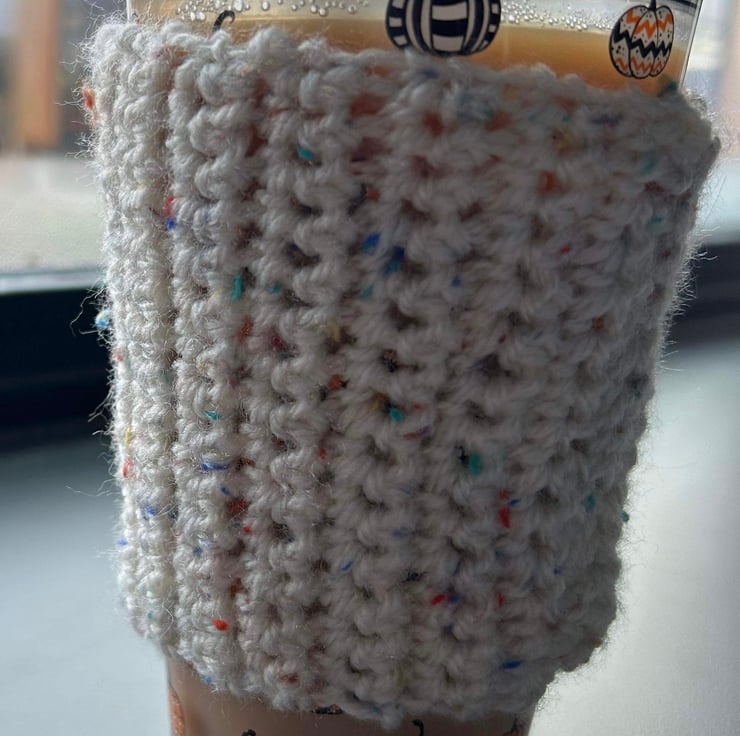 Use this cosy on a reusable cup to protect hands from a hot or cold drink. Can be washed and reused.