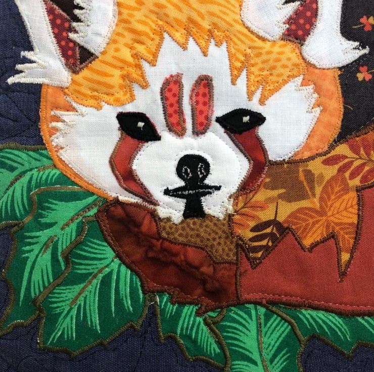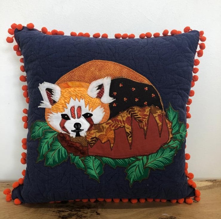 I just love Red Pandas. Making this cushion was a pleasure. The subject just made me feel really cheerful, it makes me smile every time I see it.