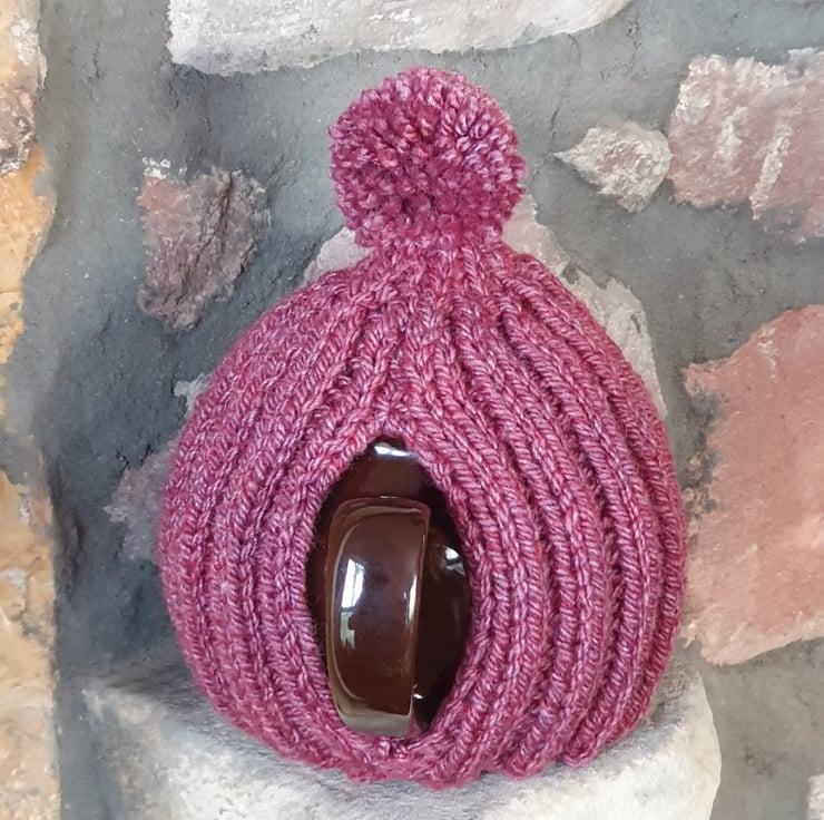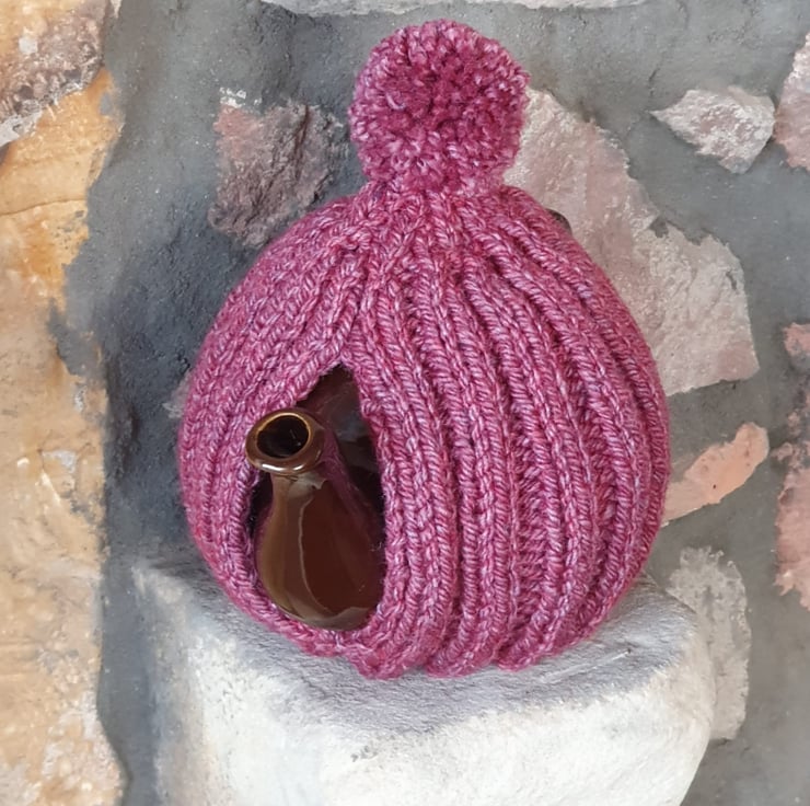 Small Tea Cosy for 2 Cup Tea Pot, Dark Heather Pink/Mauve, Hand Knitted