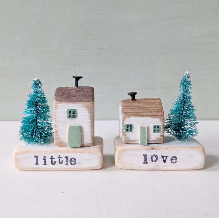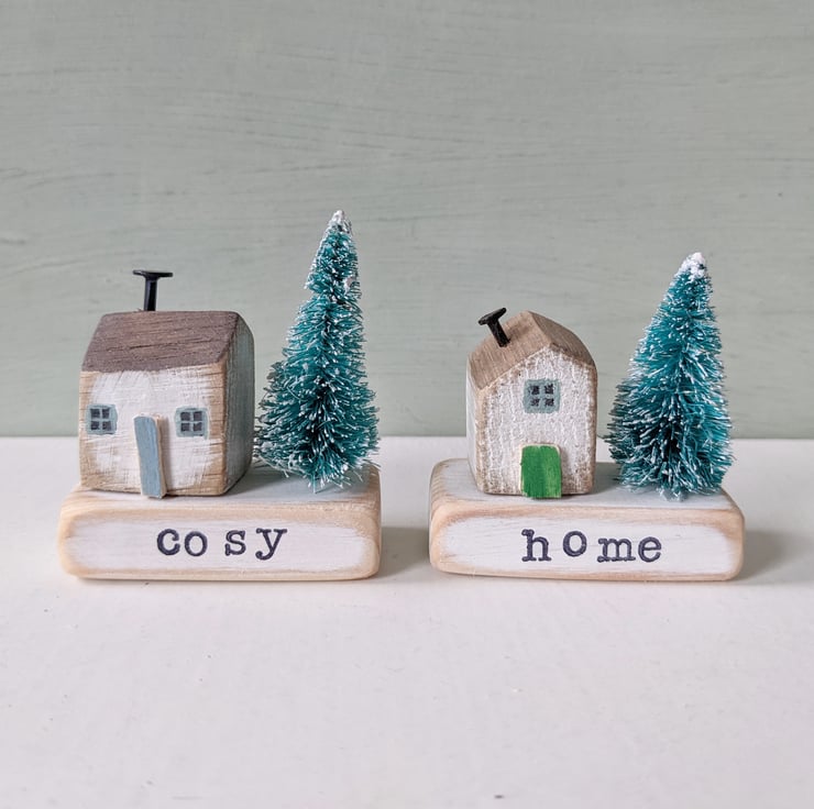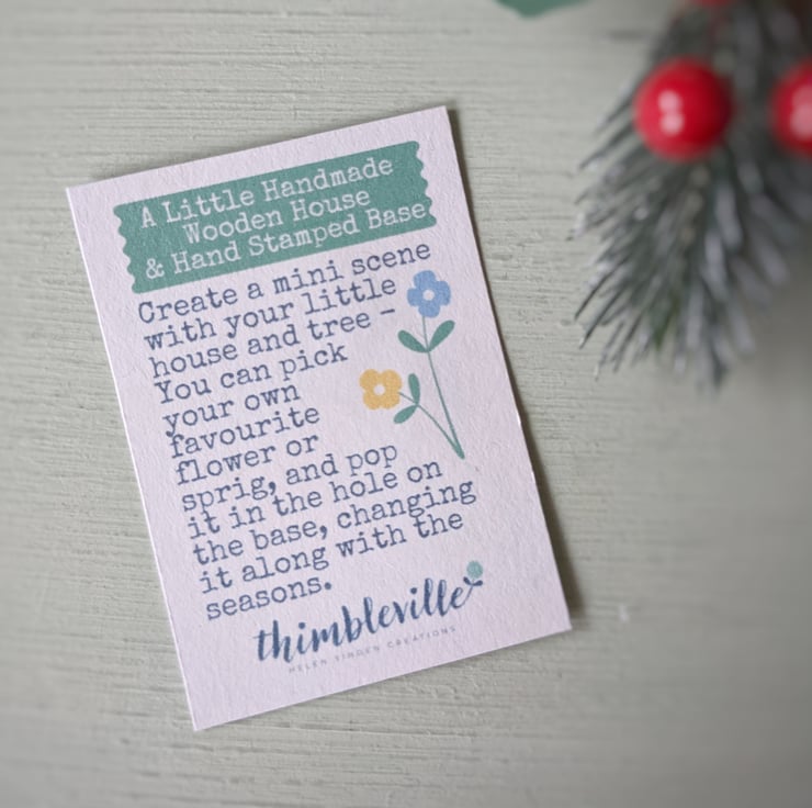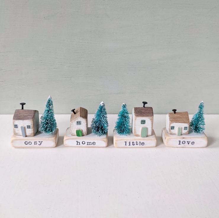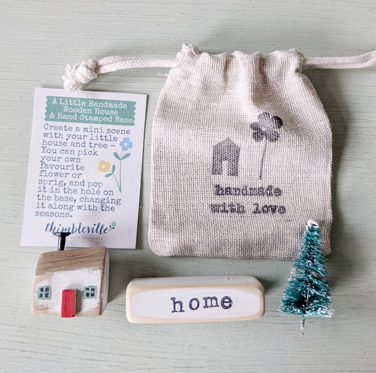 Pop your little house on your stamped wooden base with your favourite word, and add your teeny tree.