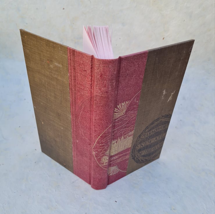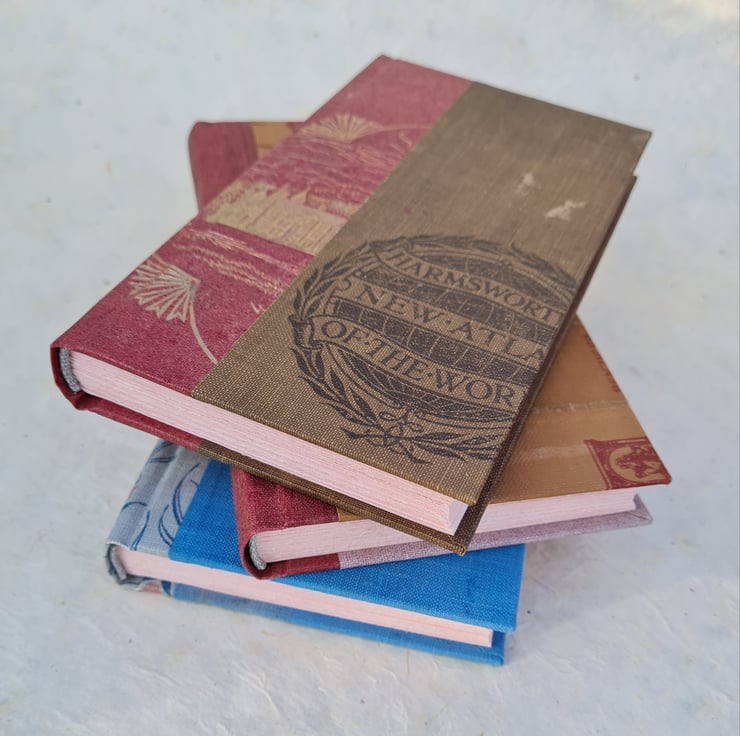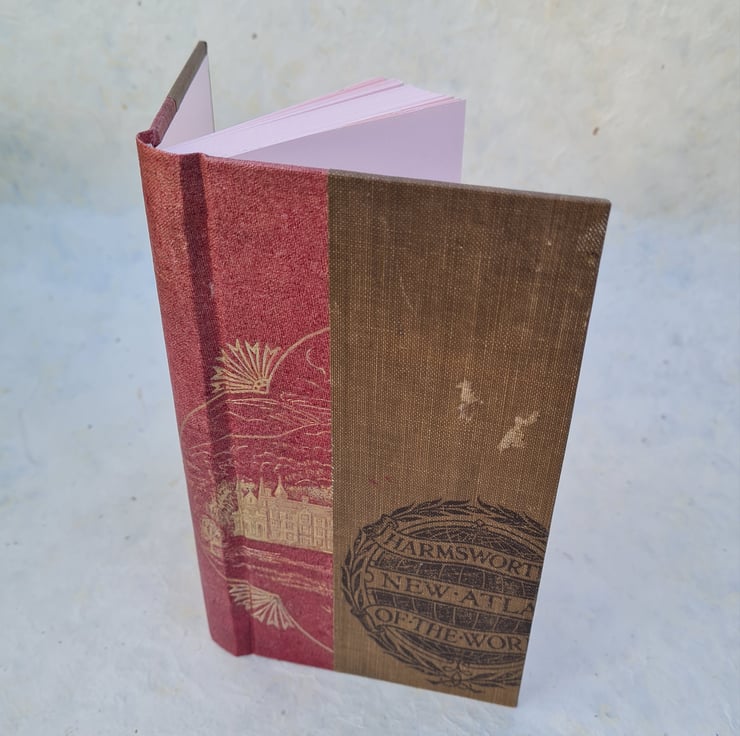A one-off hardcover journal, bound in vintage bookcloths taken from damaged books.