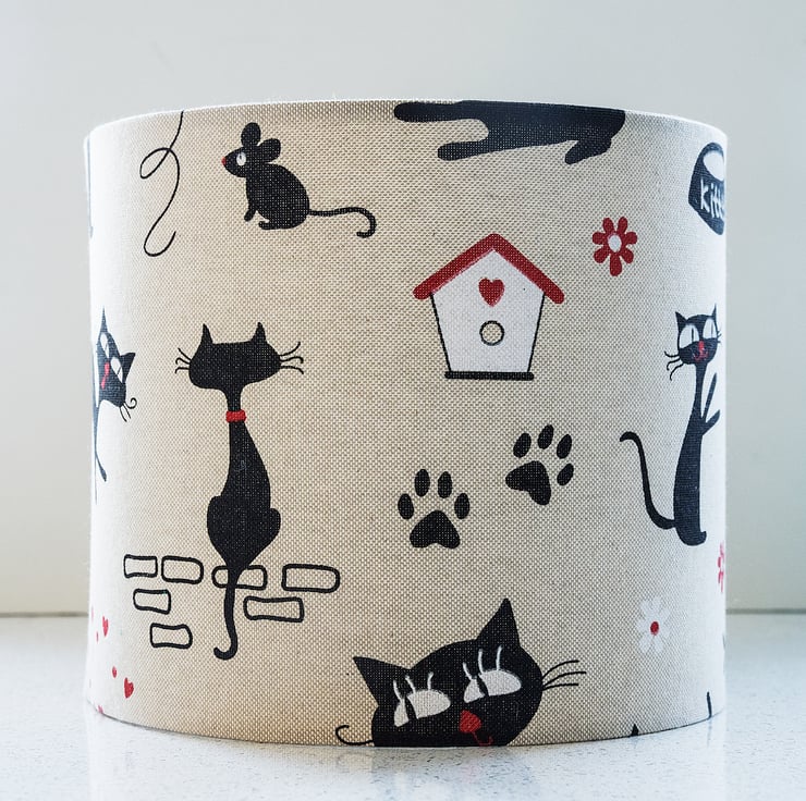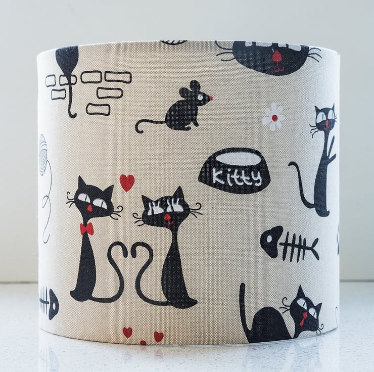 This beautiful lampshade will make the perfect gift for any cat lover! Amusing cartoons of kitties up to all their tricks will bring a smile and brighten up the home, whilst complementing any decor due to the fabric's neutral colour scheme.