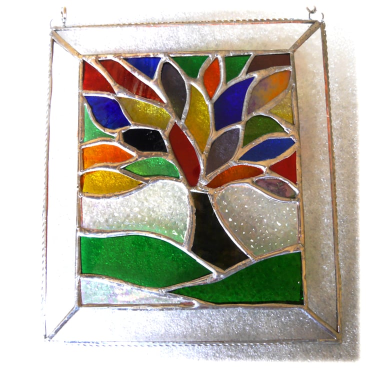 It is a 'picture' of a tree, a Tree of Life, bursting into life with its rainbow coloured leaves spreading to edge of the picture.