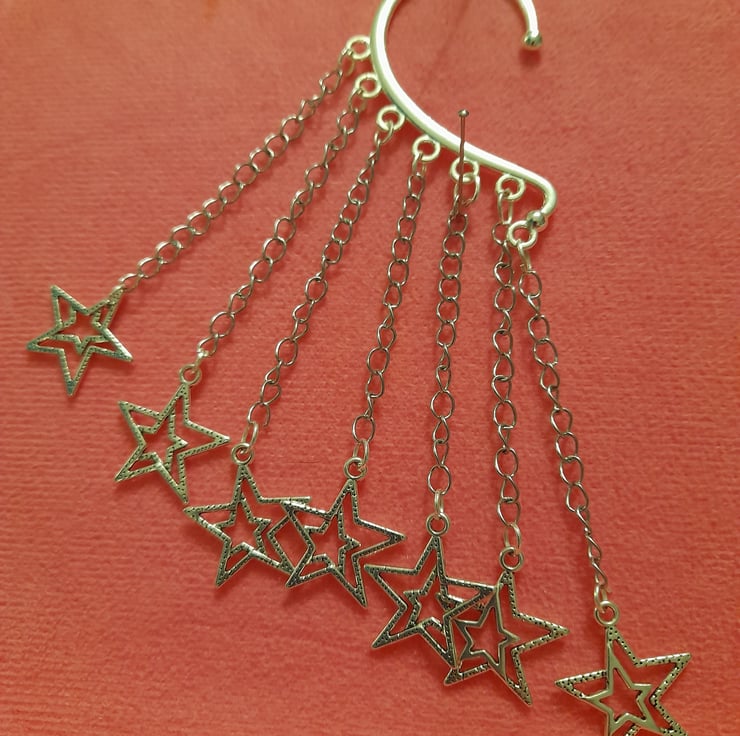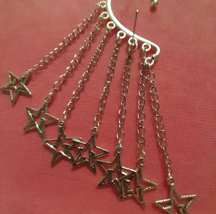 Sliver colour stars on a sliver ear cuff. Great for a party, or any day or time you like.