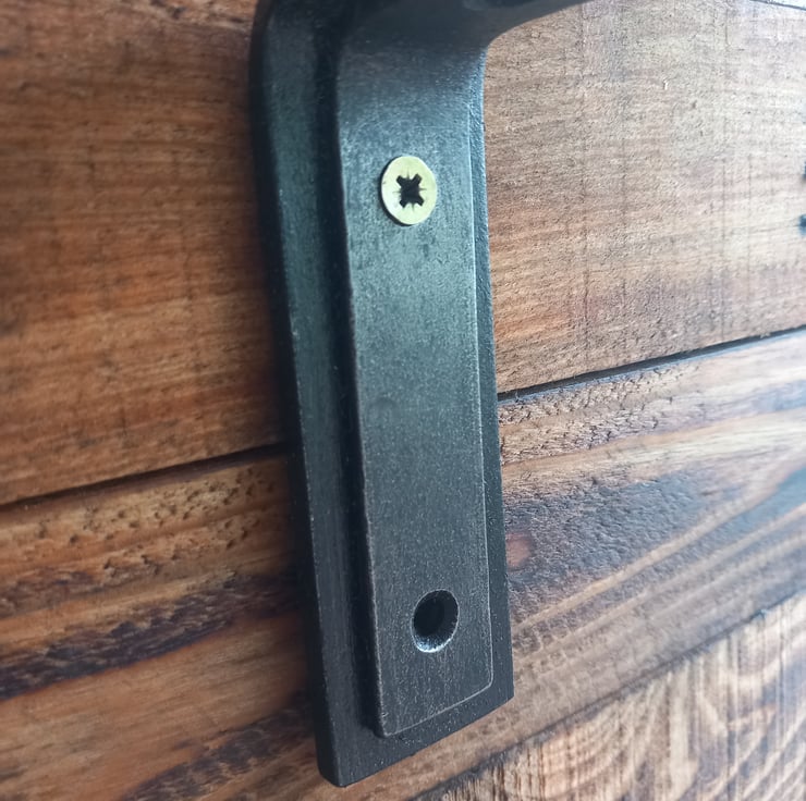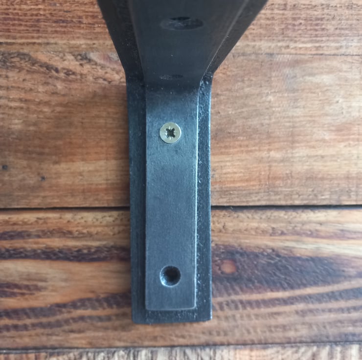 Sturdy decorative. Modern look or the forged look with hammer details. 2 different styles to suit the particular home. Please send a message to confirm sizes you need and the prices for that size. Price listed is 5'' brackets with silver brushed as seen in the first photo.