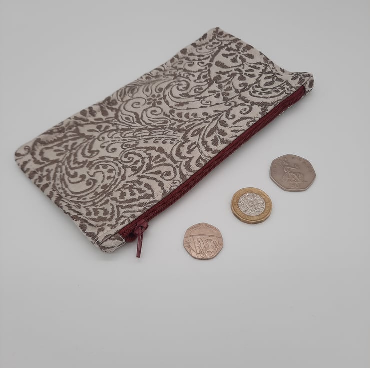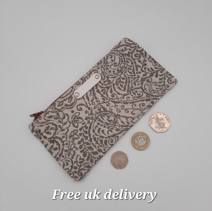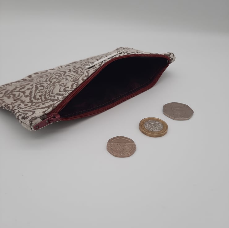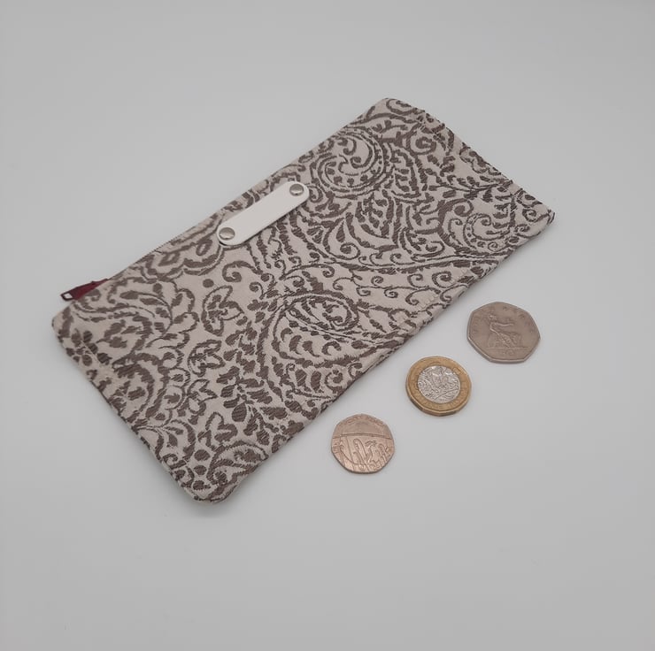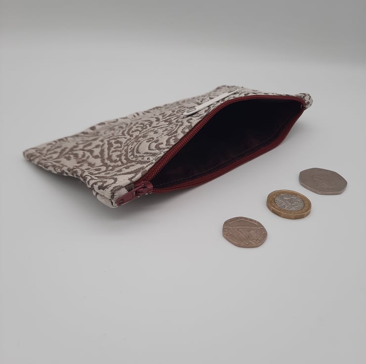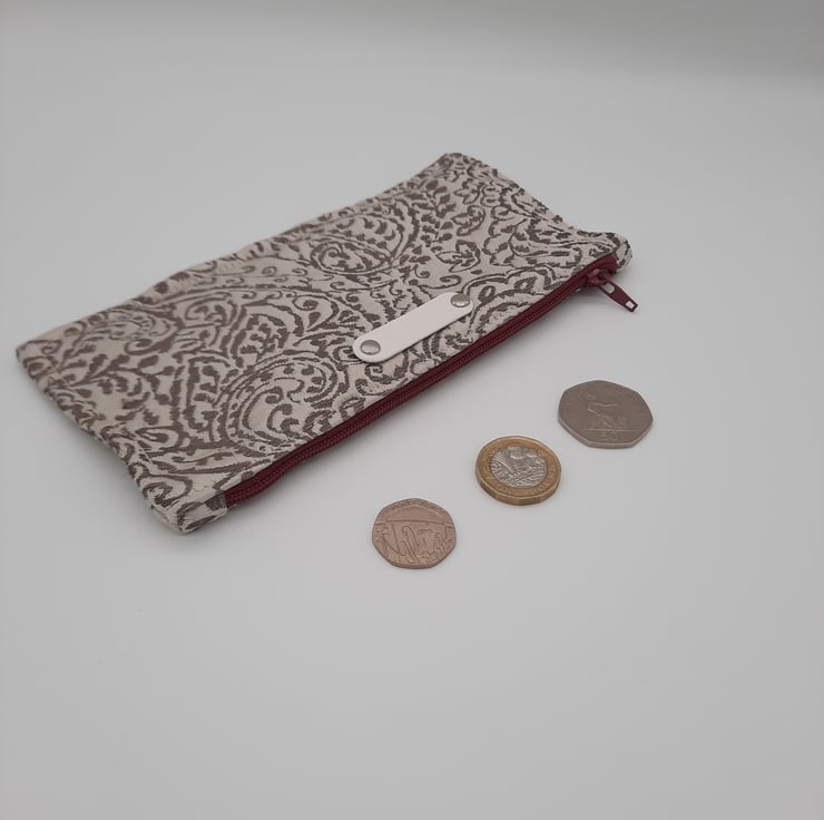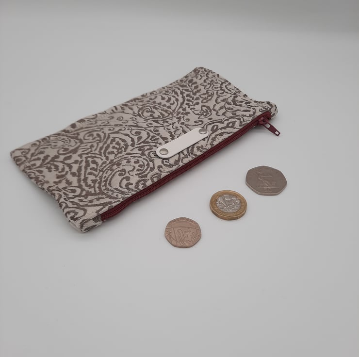 Coin purse  - white sand and taupe jacquard, plum lining zip fastening. Sale