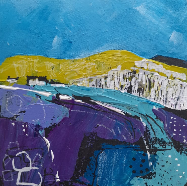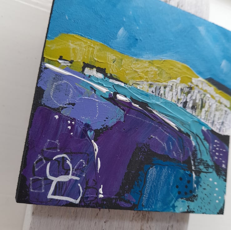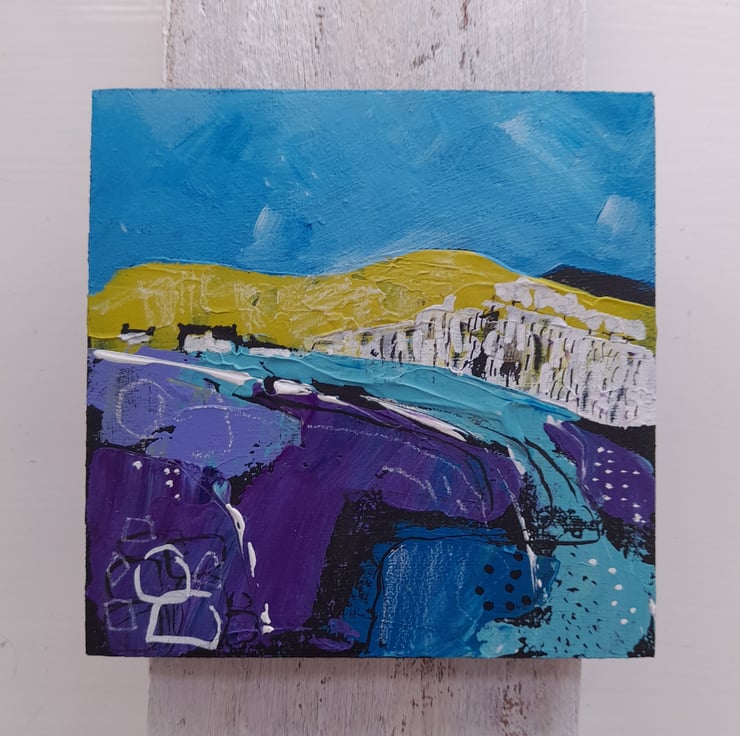 This 10 x 10 cm painting is varnished signed on the back and has a hook ready to hang. Great to brighten up a small corner or to give as a gift.