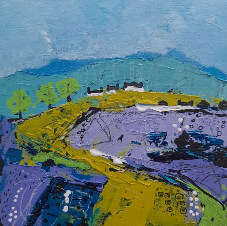 This 10 x 10 cm painting is varnished signed on the back and has a hook ready to hang. Great to brighten up a small corner or to give as a gift.