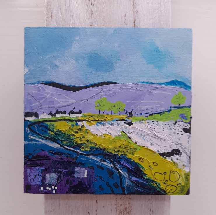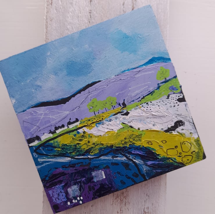 This 10 x 10 cm painting is varnished signed on the back and has a hook ready to hang. Great to brighten up a small corner or to give as a gift.