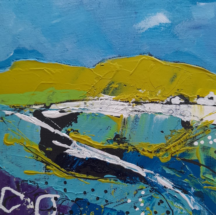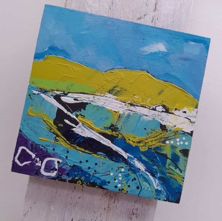 This 10 x 10 cm painting is varnished signed on the back and has a hook ready to hang. Great to brighten up a small corner or to give as a gift.