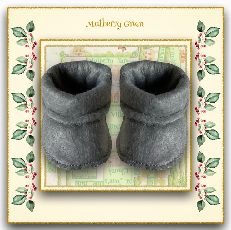 A cute little pair of grey ankle boots, to fit the Mulberry Green characters. The boots look lovely with the corduroy trousers of jeans or with tights and and a kilt.