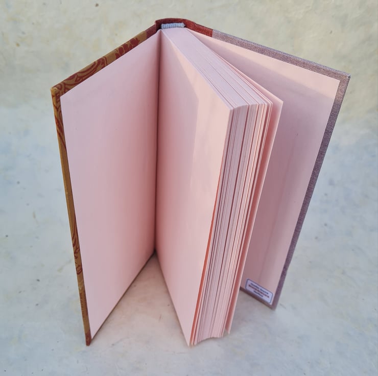 Approximately 128 pages of beautiful 130gsm GFSmith Extract paper. This is a zero waste paper made largely from recycled coffee cups. The endpapers are of the same paper.