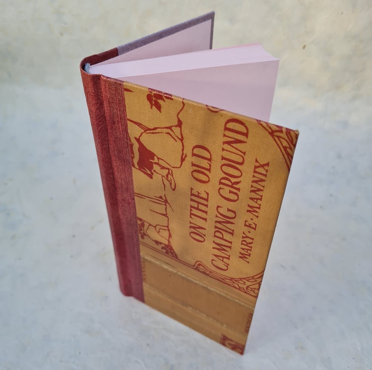 One-off hardcover journal, bound in reclaimed vintage bookcloth, taken from damaged books.