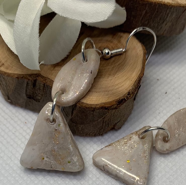 I’m Made from resin and polymer clay with Sterling silver wires colour neutral with a hint of gold & silver running through them