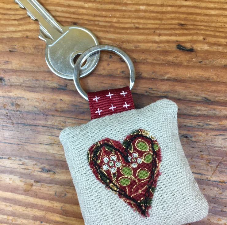 Love Mum keyring, Embroidered heart linen & lavender key ring, fabric key ring