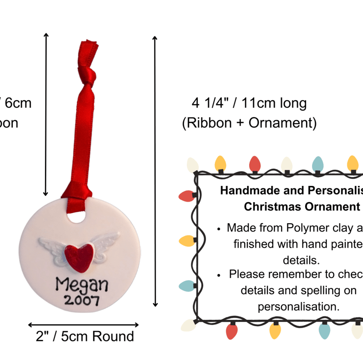 Add an extra pinch of magic to your Christmas with our Handmade Personalised Christmas Tree Decoration. This cute and fun ornament features a variety of charming festive figures including Santa, a snowman, reindeer, and an angel, all crafted from polymer clay with hand painted details. We've also added a touch of love and remembrance with a heart and wing design.