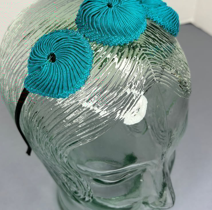 Beautiful headband trimmed with handmade petersham nautilus. This special headband is made with beautiful cotton petersham ribbon and is perfect party wear!