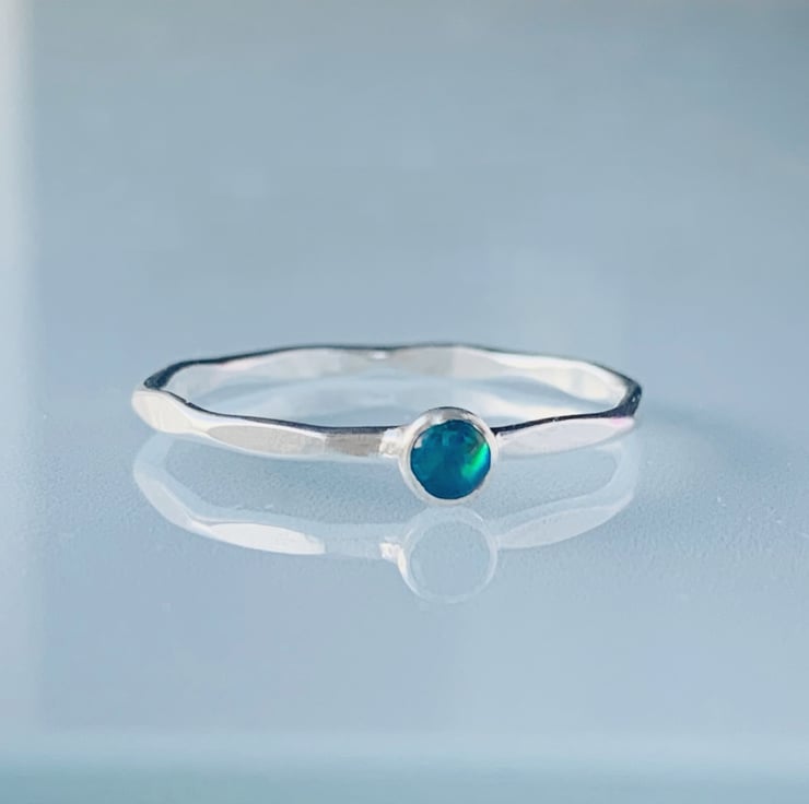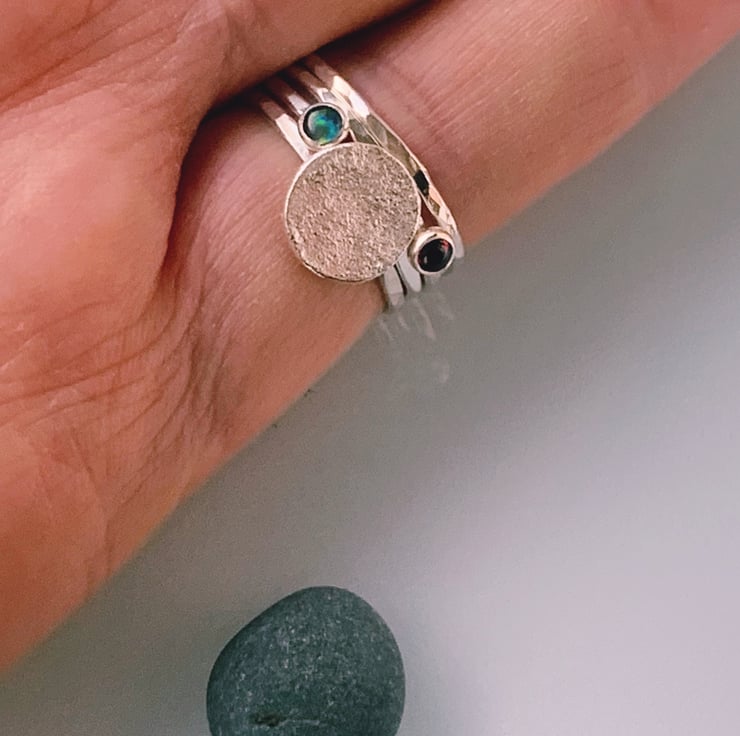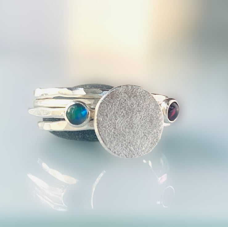 Recycled Sterling Silver Garnet and Opal Skinny Ring Stack