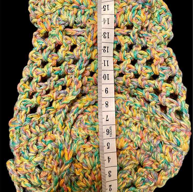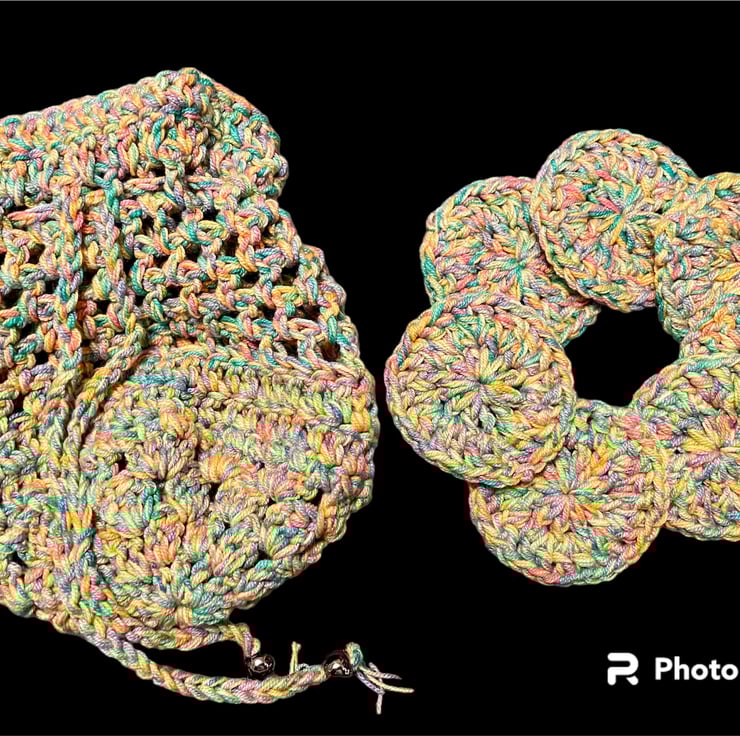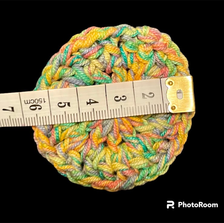 Each crocheted scrubbie measures approximately 6 cm across with the bag that measures approximately 13 x 16 cm when flat.
