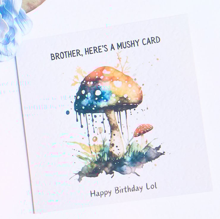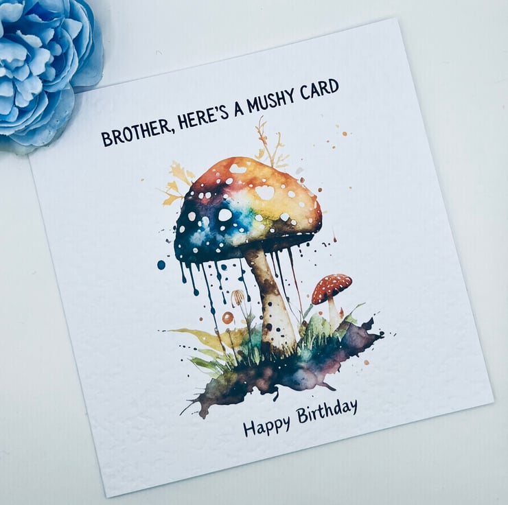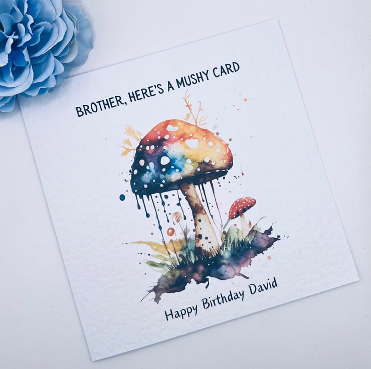 Mushy birthday card for brother can be customised psychedelic watercolour design