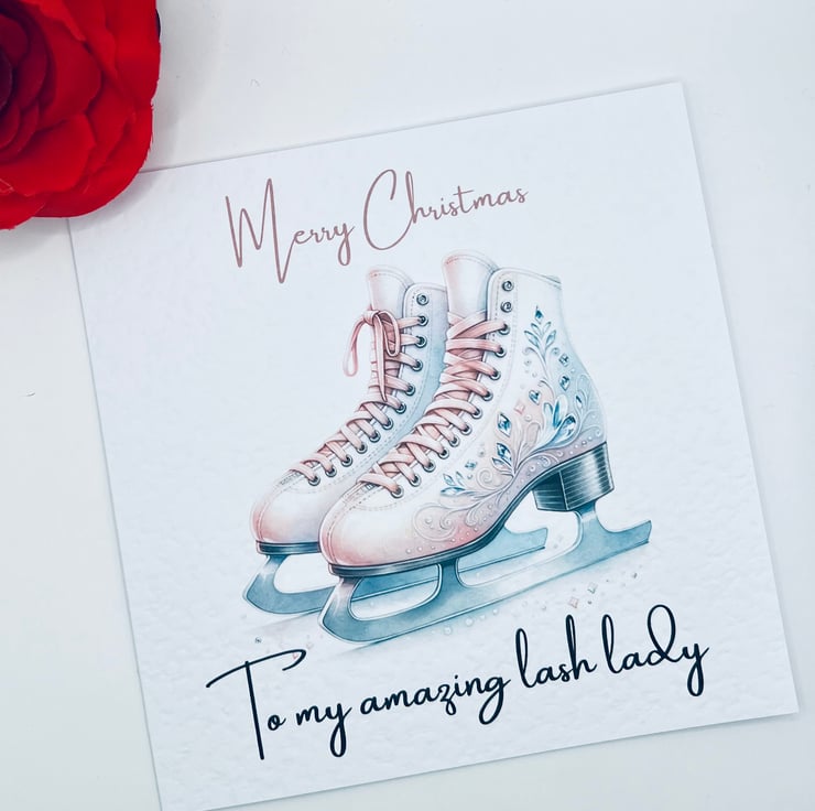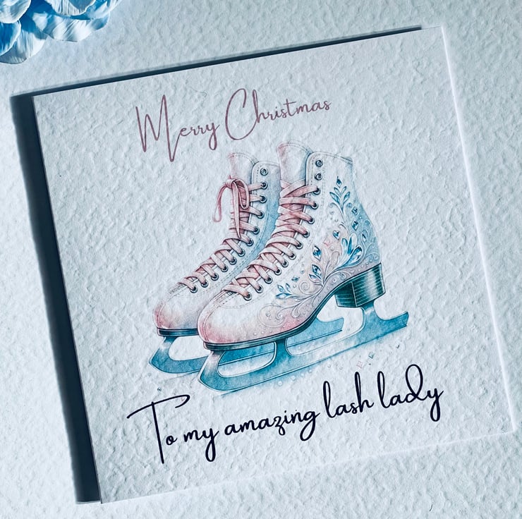 Christmas card with watercolour iceskates for lash lady, hairdresser, teacher