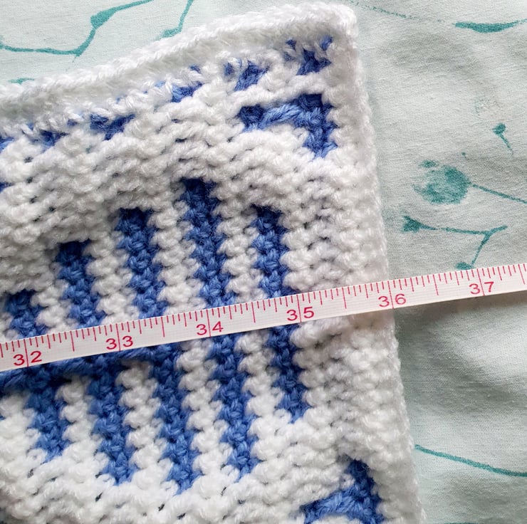 It measures 32 x 36ins, is made from 100% Acrylic yarn. Machine washable at 30'c and not to be tumble dryed.