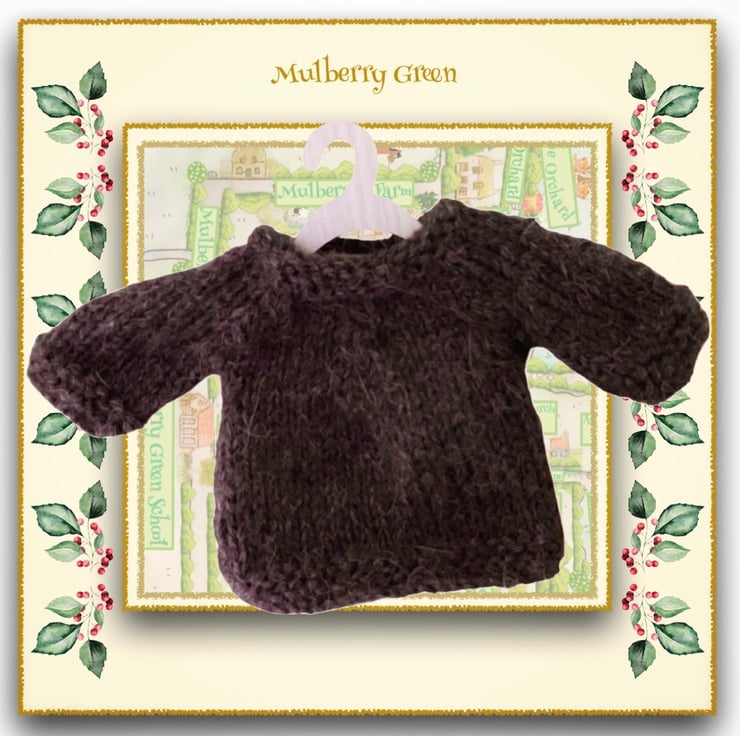 A lovely jumper, knitted in soft wool, to fit the Mulberry Green characters. The jumper goes well with jeans or blue cord trousers.