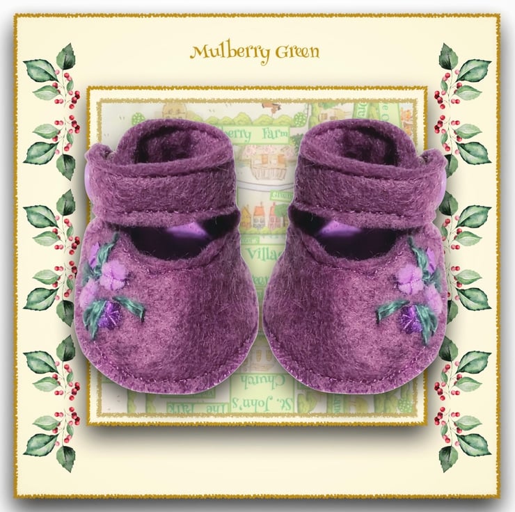 A cute little pair of purple heather embroidered shoes, to fit the Mulberry Green characters. The shoes look lovely with the little dresses in my shop.