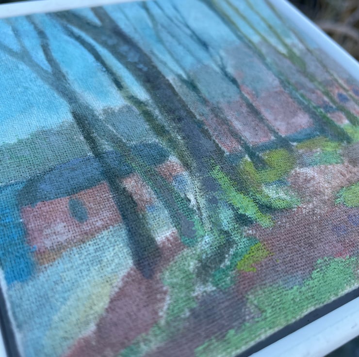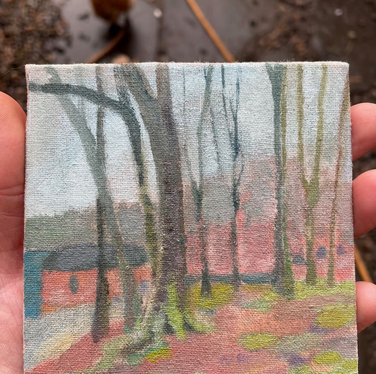 This is a painting from in the woods by the tarn looking down towards the boathouse (now a place that holds art exhibitions and not boats!).