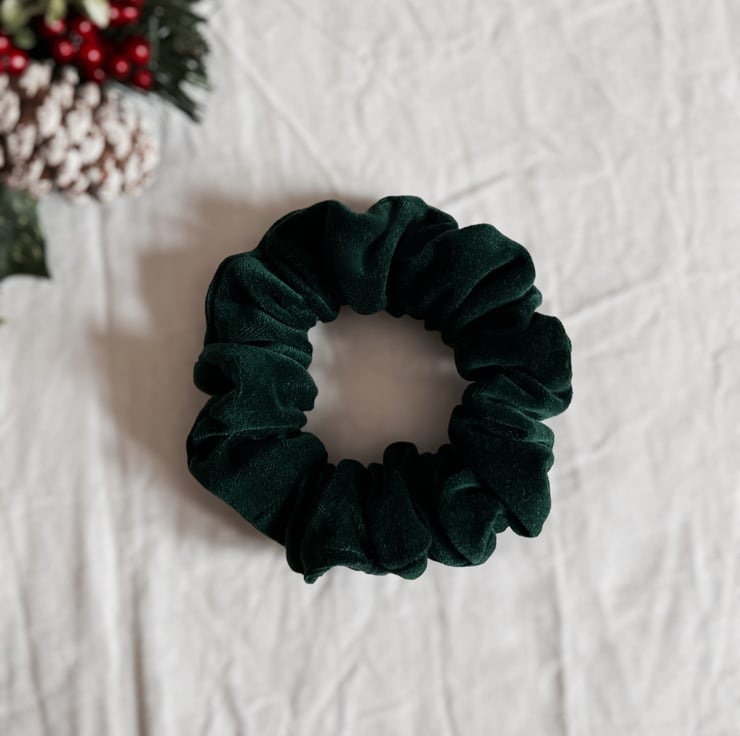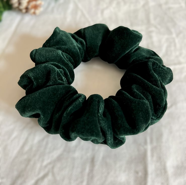 Soft, bottle green velvet scrunchies handmade by me.