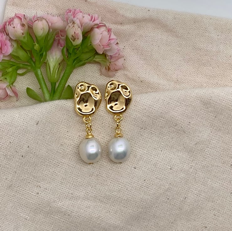One day, as I strolled down the street, I met a cute Bernese Mountain Dog with a big shiny pearl on her neck. This led me to craft a pair of earrings featuring a golden paw and a freshwater pearl to remember that cute scene.