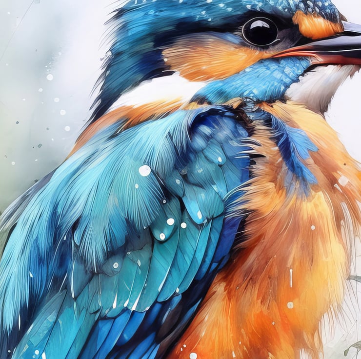 Transitioning effortlessly from the artist's palette to your walls, this print is more than just a picture; it's a conversation starter, a window to the natural world. The kingfisher, often a symbol of peace and prosperity, is rendered with a passion that reflects in every brushstroke. Display it proudly in your living space or office, and let the serene beauty of this kingfisher brighten your day.
