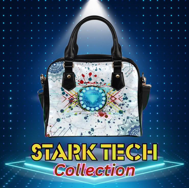 Stark Tech artistic superhero inspired PU leather fashionable shoulder handbag double sided, the bags are professionally handmade and printed using the latest technology in inkjet pigment printing to achieve really vivid colours. This handbag is ideal as a fashion accessory, a gift or keepsake.
